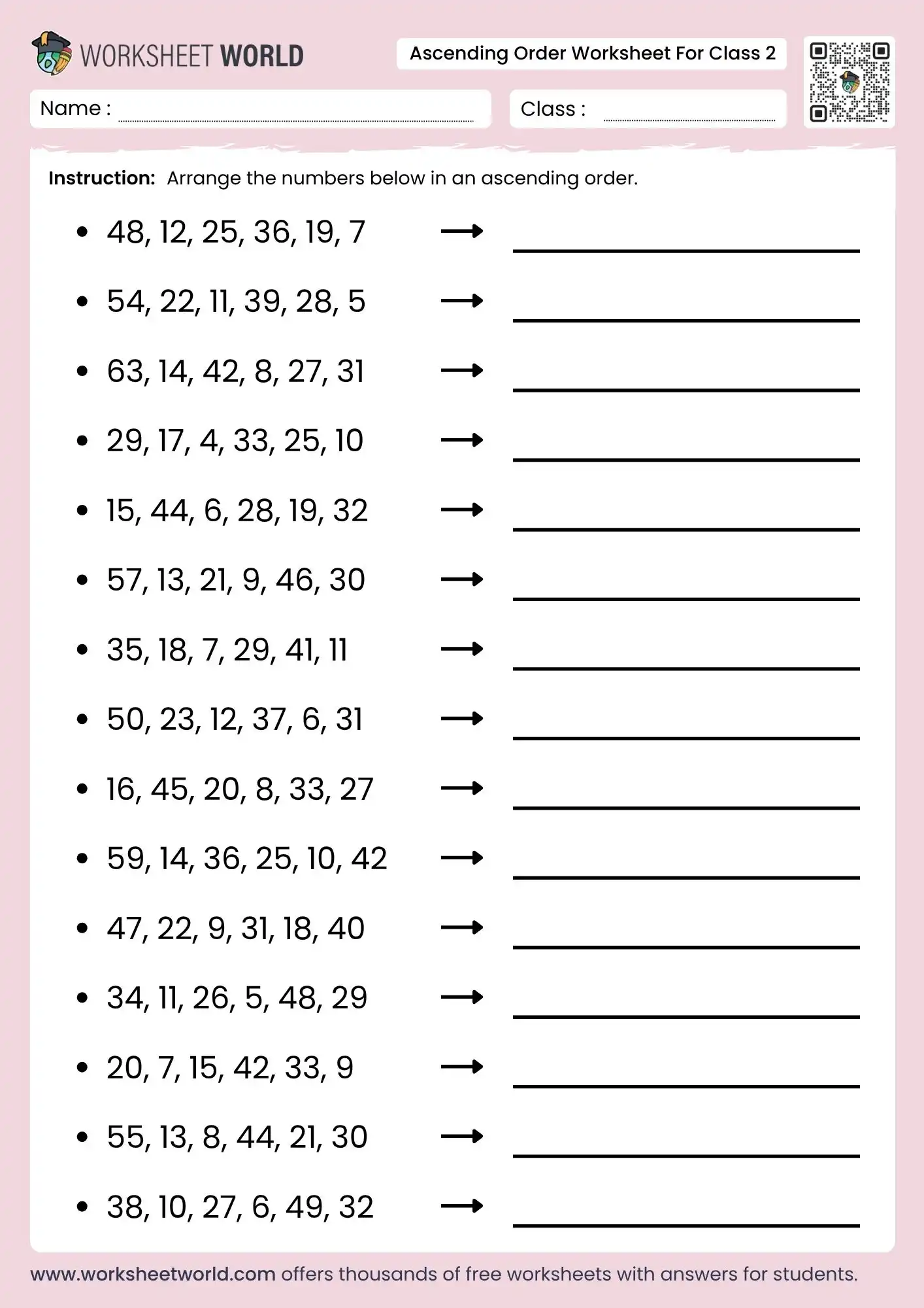 Ascending Order Worksheet For Class 2 With Answers and Free PDF