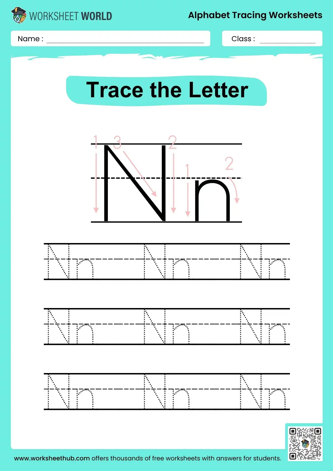 N Alphabet Letter Tracing Worksheets help kids form clear writing habits by tracing both capital and small N. These sheets are ideal for beginners in preschool and nursery, providing enough space to practice strokes in a calm and structured layout.