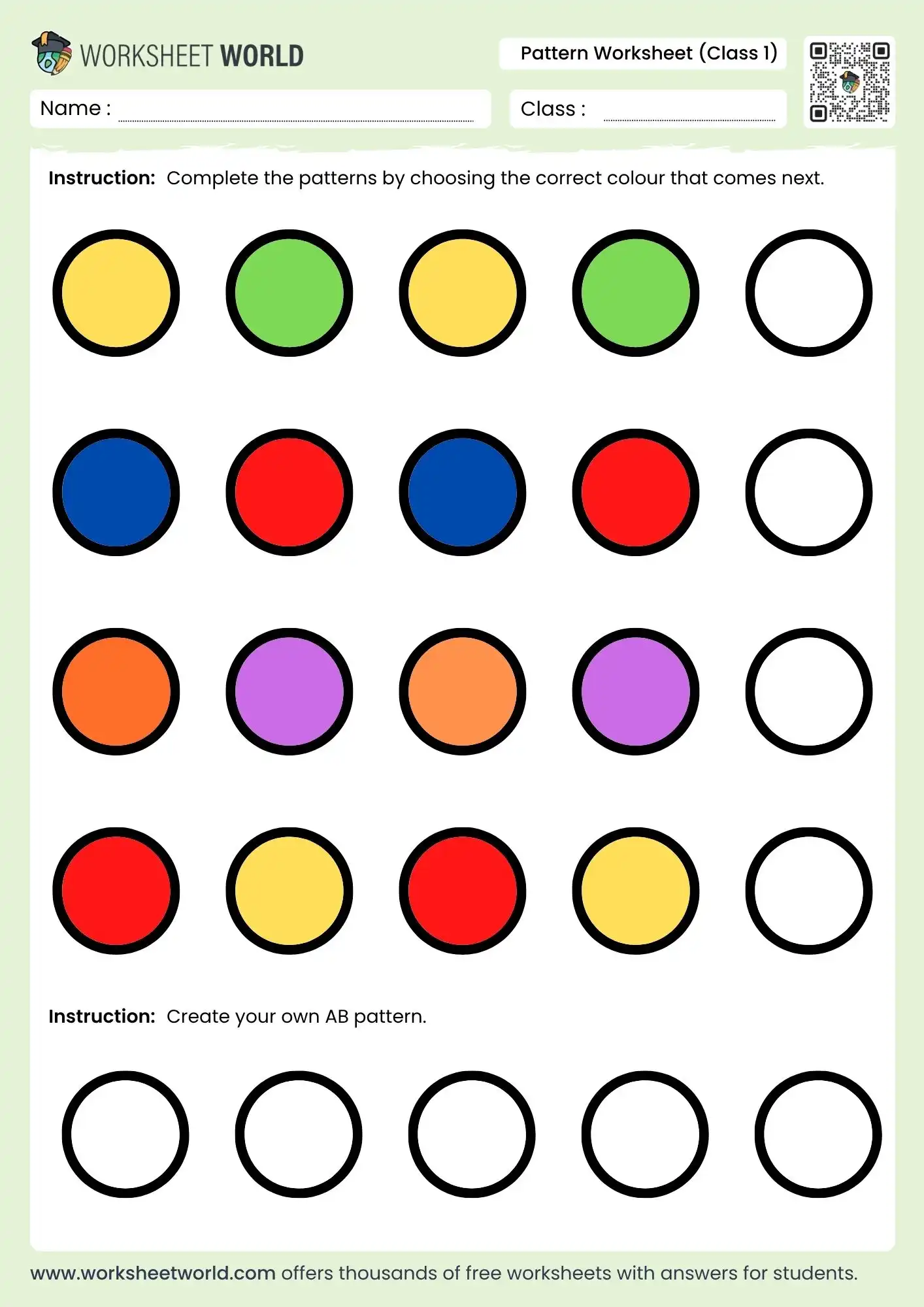 Pattern Worksheet For Class 1 With Answers and Printable PDF