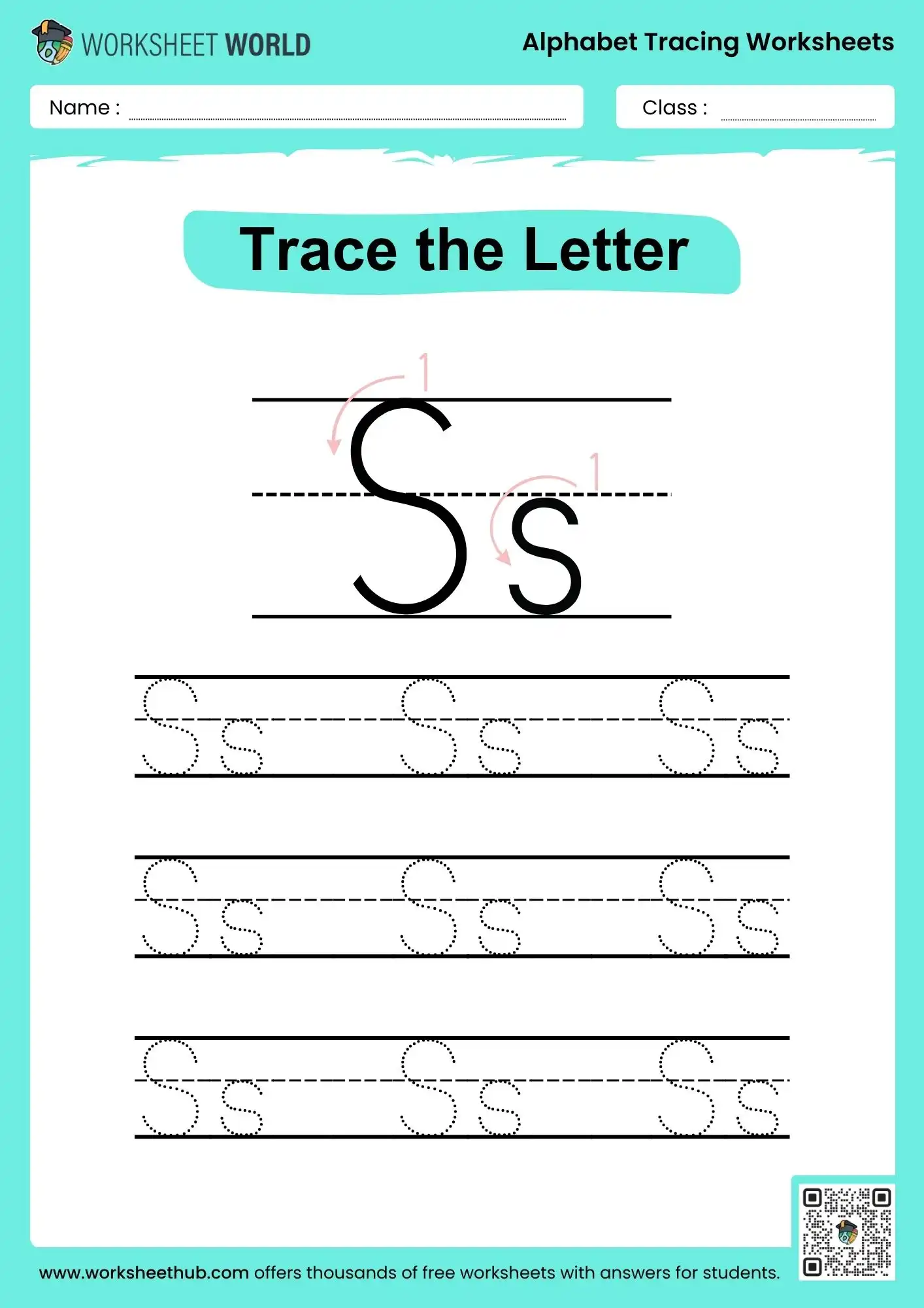 S Alphabet Letter Tracing Worksheets
