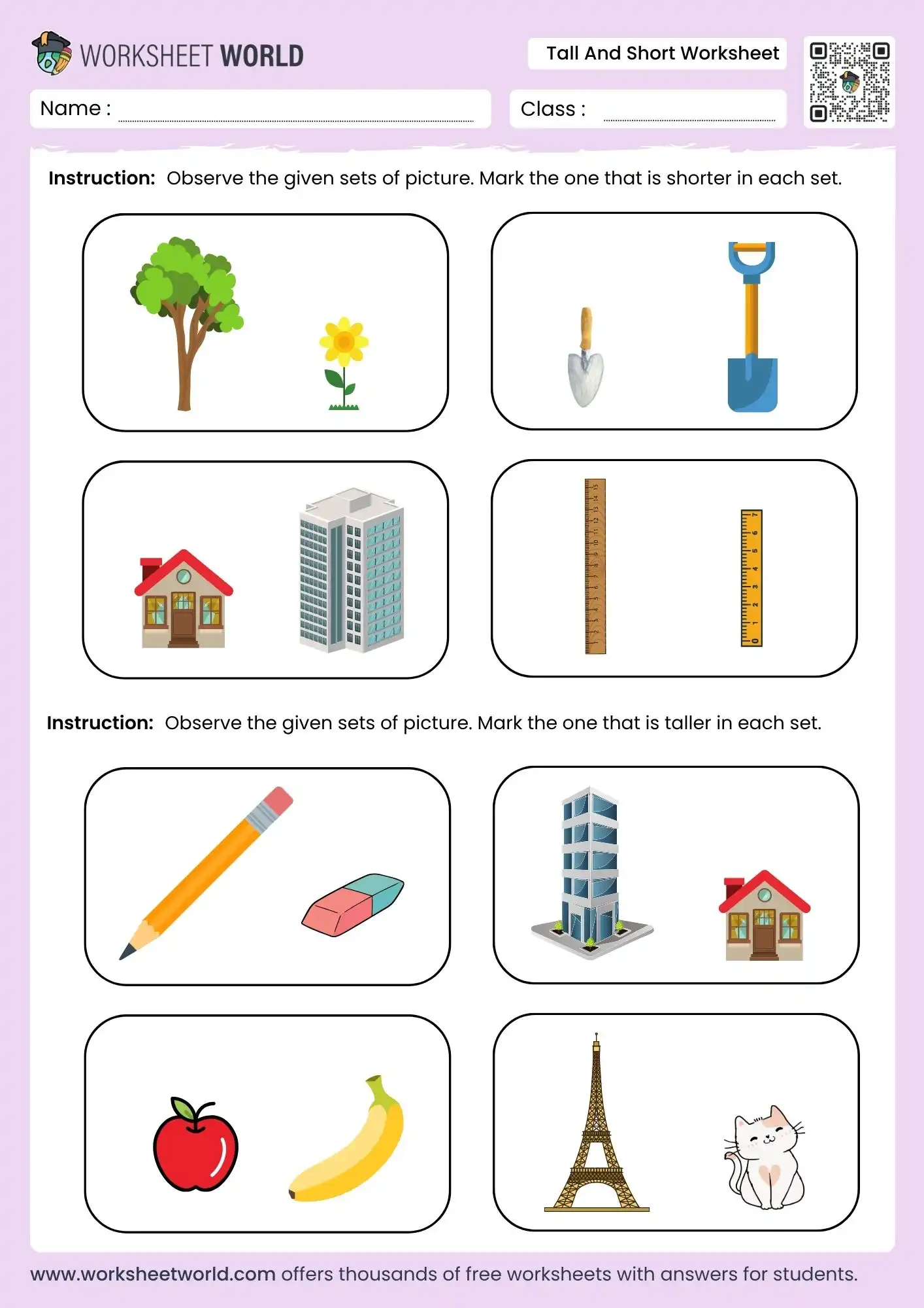 Tall And Short Worksheet With Answers and Free PDF For Preschool, Kindergarten To Grade 1