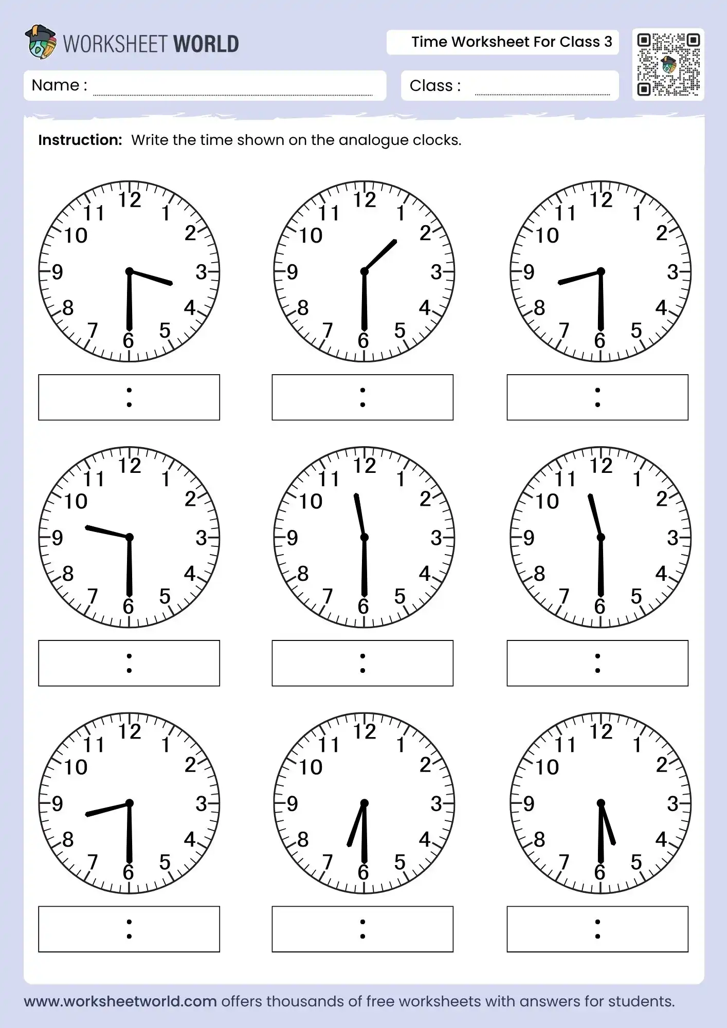 Time Worksheet For Class 3 With Answers and PDF